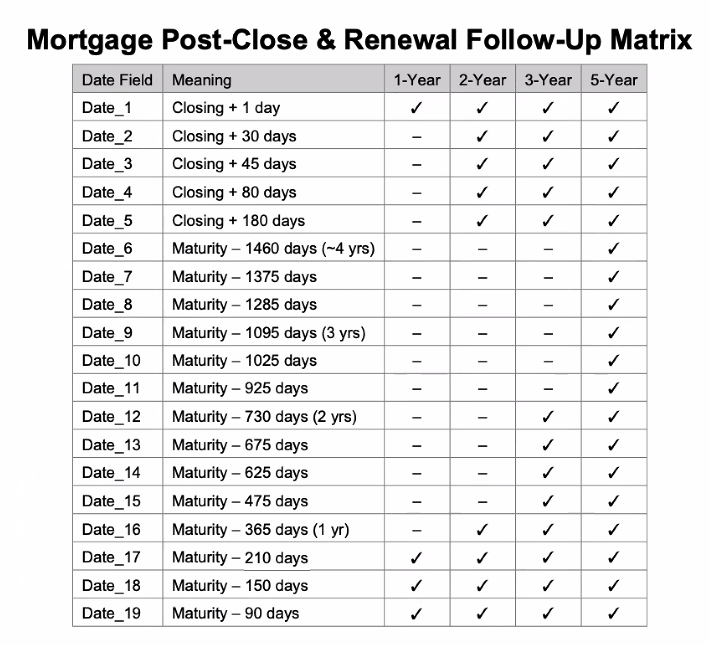 Below are the dates that are triggered to send Post Close Emails.